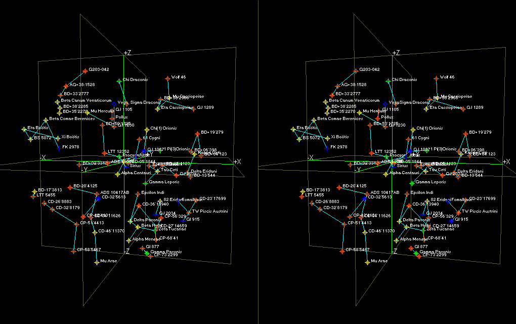parsecs, excluding M stars. It is a set of stereo pairs, viewable in 3-D