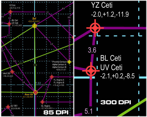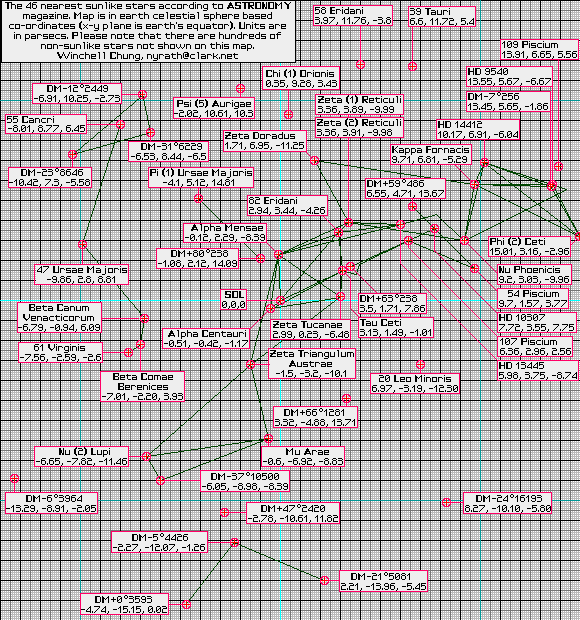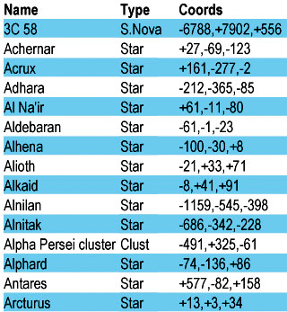 Distances are in light-years instead of parsecs, which will please science fiction writers and annoy astronomers.